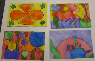 4. If I do it again, I would have students write bug name and description on separate piece of paper because I thought their writing took away from the design of the insects.![]() |